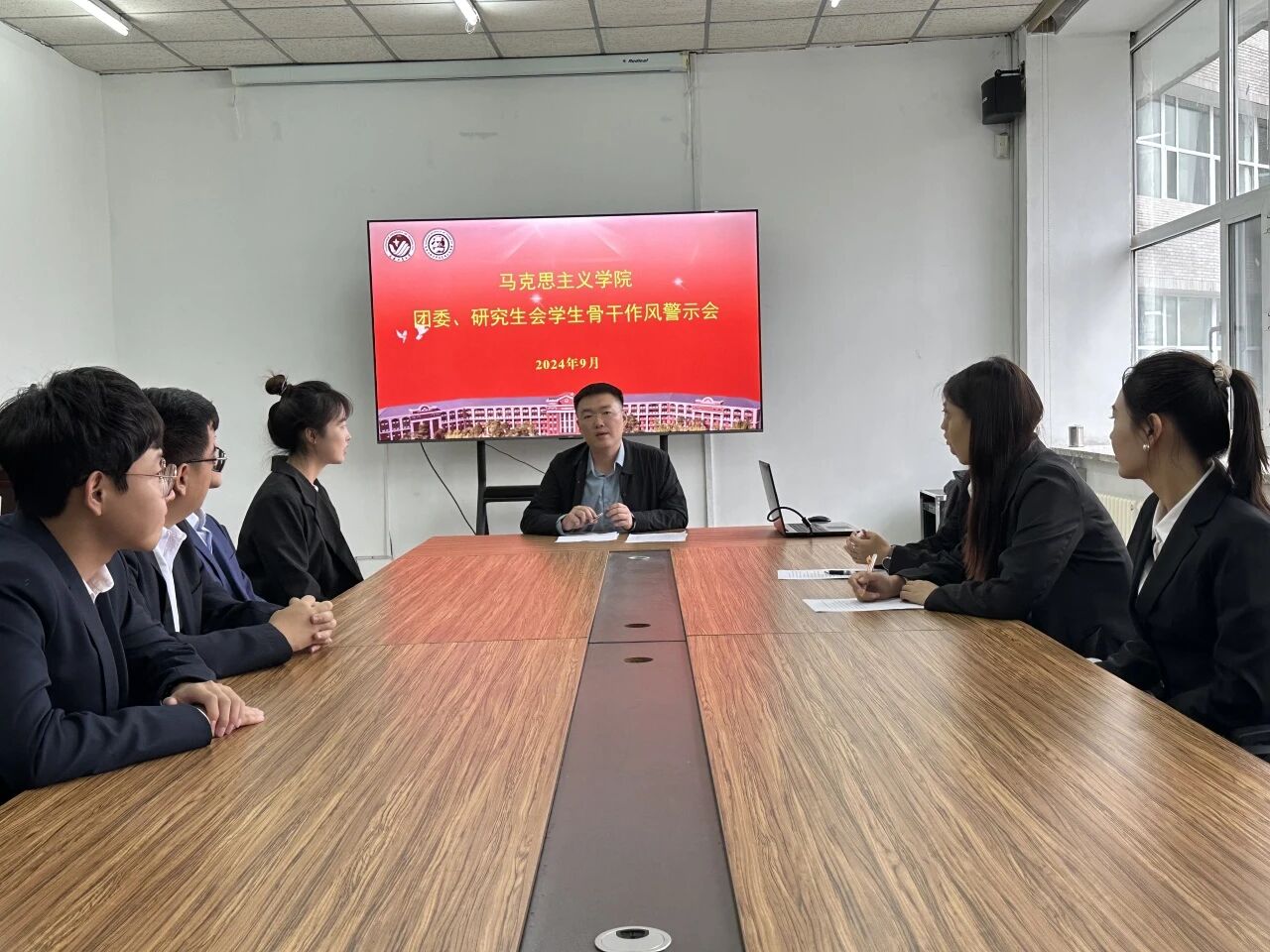为进一步推进团委、研究生会组织改革,提升团委、研究生会组织成员的工作能力,增强学院学生骨干自律意识和服务水平,建设一支强有力的团、研学生骨干队伍,2024年9月20日下午,马克思主义学院召开团委、研究生会学生骨干作风警示会。本次会议由马克思主义学院团委书记尹政主持,团委、研究生会学生骨干参加此次会议。
