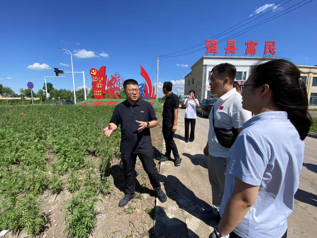 当日下午,实践团师生在镇领导的带领下走访慰问新开河村三户脱贫户家庭的四名贫困学生,送去学习用品和书籍,用实际行动助力乡村学子求学梦想。随后,一行人走进当地重点培育的万寿菊产业基地,参与农务劳作,亲身体验“绿水青山就是金山银山”的发展理念,感受乡村“美丽经济”的蓬勃活力。