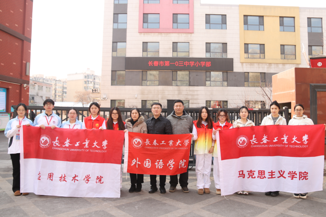 2026年3月5日是全国第63个学雷锋纪念日、第27个“中国青年志愿者服务日”。为全面贯彻习近平总书记关于深入开展学雷锋活动的重要指示精神,推动大中小思政课一体化建设走深走实,3月5日,马克思主义学院联合应用学院与外语学院组织学生志愿者,共赴长春市第103中学小学部开展学雷锋社会实践活动,打造大中小思政课一体化建设的生动课堂,让雷锋精神在青少年的心落地生根。