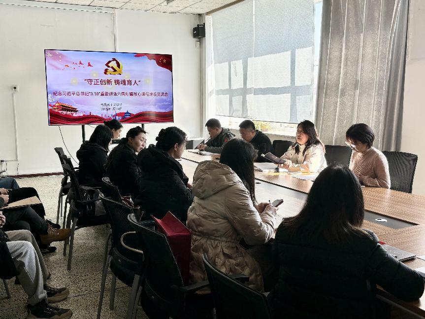 在习近平总书记发表“3·18”重要讲话六周年之际,为进一步推进新时代思想政治理论课改革创新,长春工业大学马克思主义学院召开“守正创新 铸魂育人—纪念习近平总书记3·18重要讲话六周年暨核心课程建设交流会”。学院领导班子和全体思政课教师参加会议,会议由学院院长于浚湜主持。