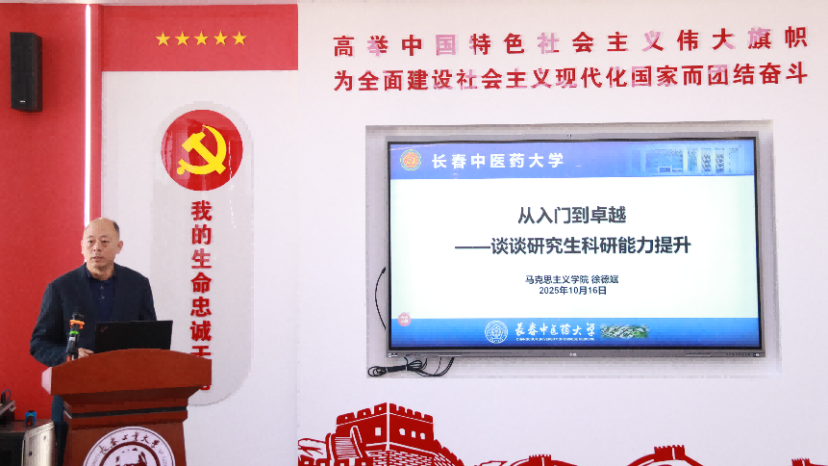 长春中医药大学马克思主义学院院长徐德斌教授以《从入门到卓越——谈谈研究生科研能力的提升》为题,结合自身科研与教学经验,从学术思维培养、研究方法运用、最终成果转化等方面,为研究生科研能力提升提供了系统性建议。